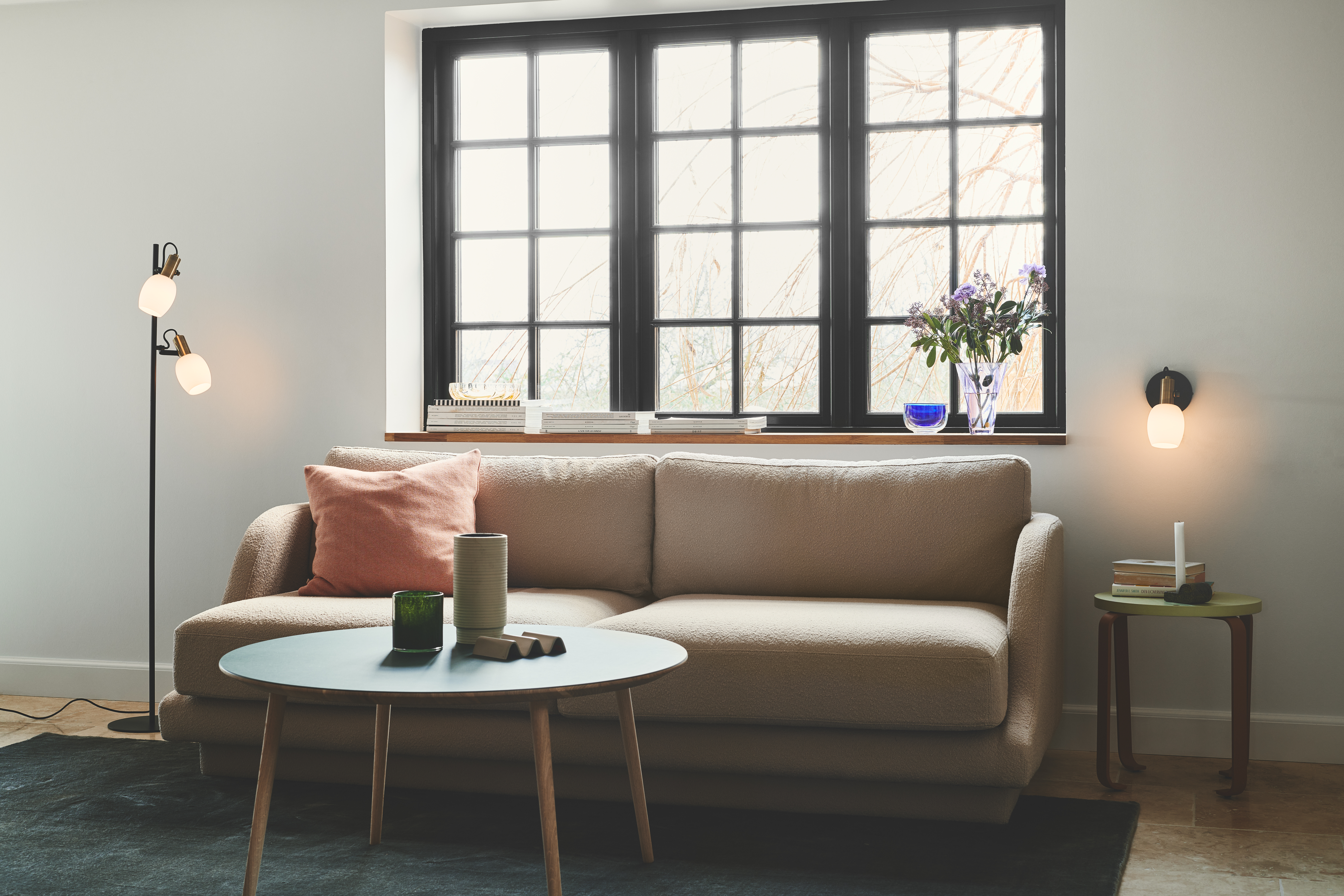 MetalArild-familien er en serie af lamper i et moderne design med et industrielt touch. Den runde skærm i mat opalhvidt glas komplimenteres elegant af brunlige messingdetaljer. Du kan nemt justere lampehovederne, så du får et retningsbestemt lys.