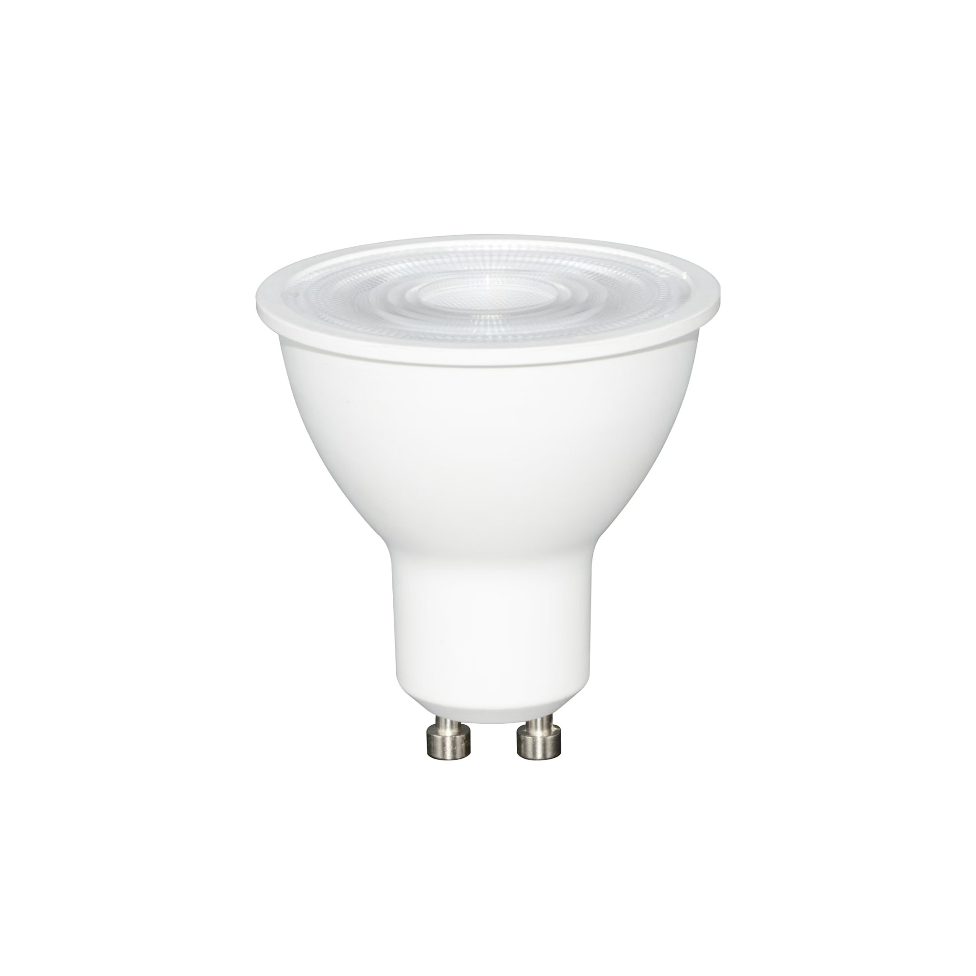 PlastPAR16-pære med GU10-fatning og dæmpbart, varmt hvidt lys. Højt lysudbytte på 850 lumen.