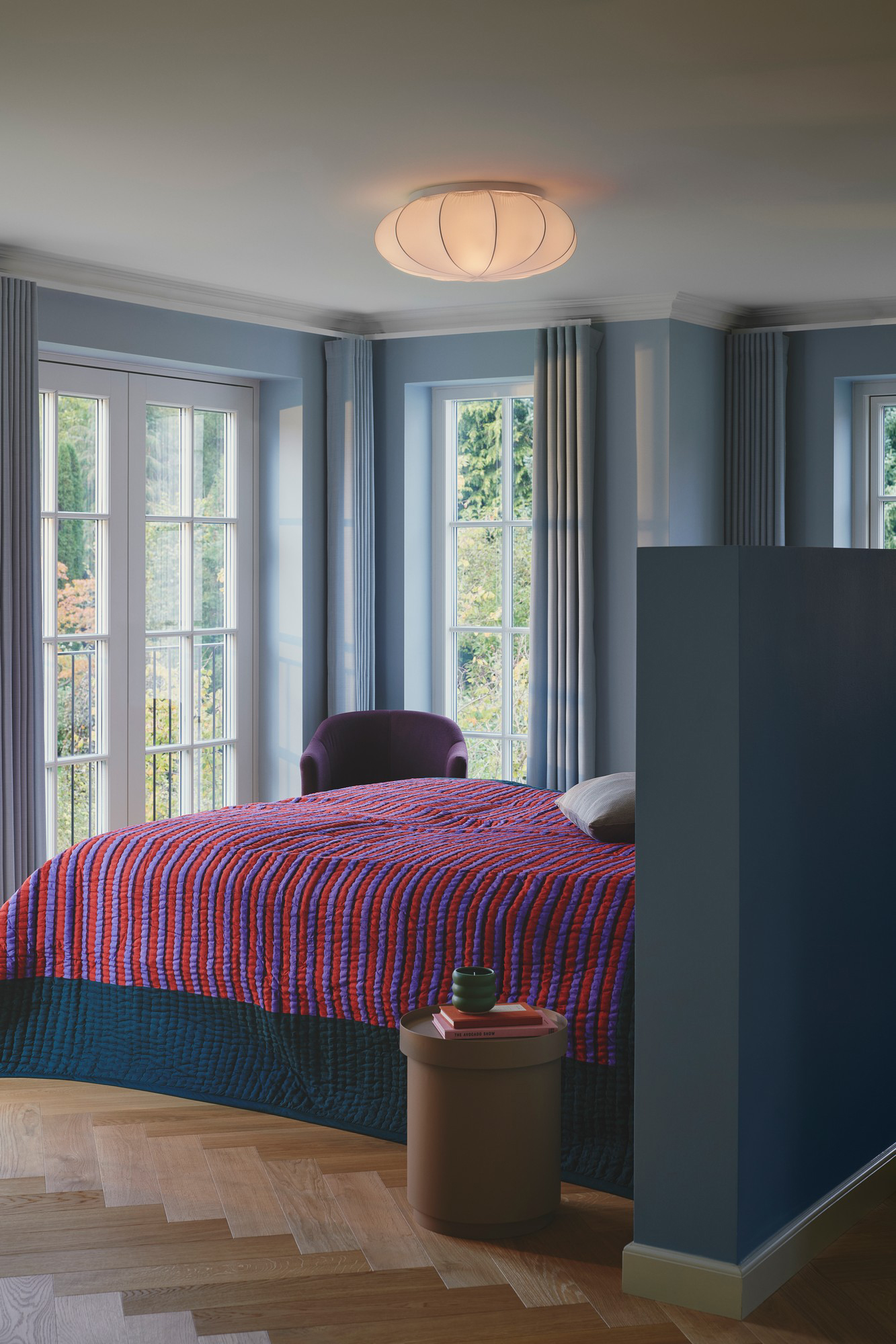 TextilienAeron hat ein luftiges Design und einen weichen Stoffton, der für ein gleichmäßiges und angenehmes Licht sorgt – perfekt, um ein gemütliches Ambiente im Schlafzimmer zu schaffen. Die Lampe ist dank eingebautem Kabelbinder einfach zu montieren.
