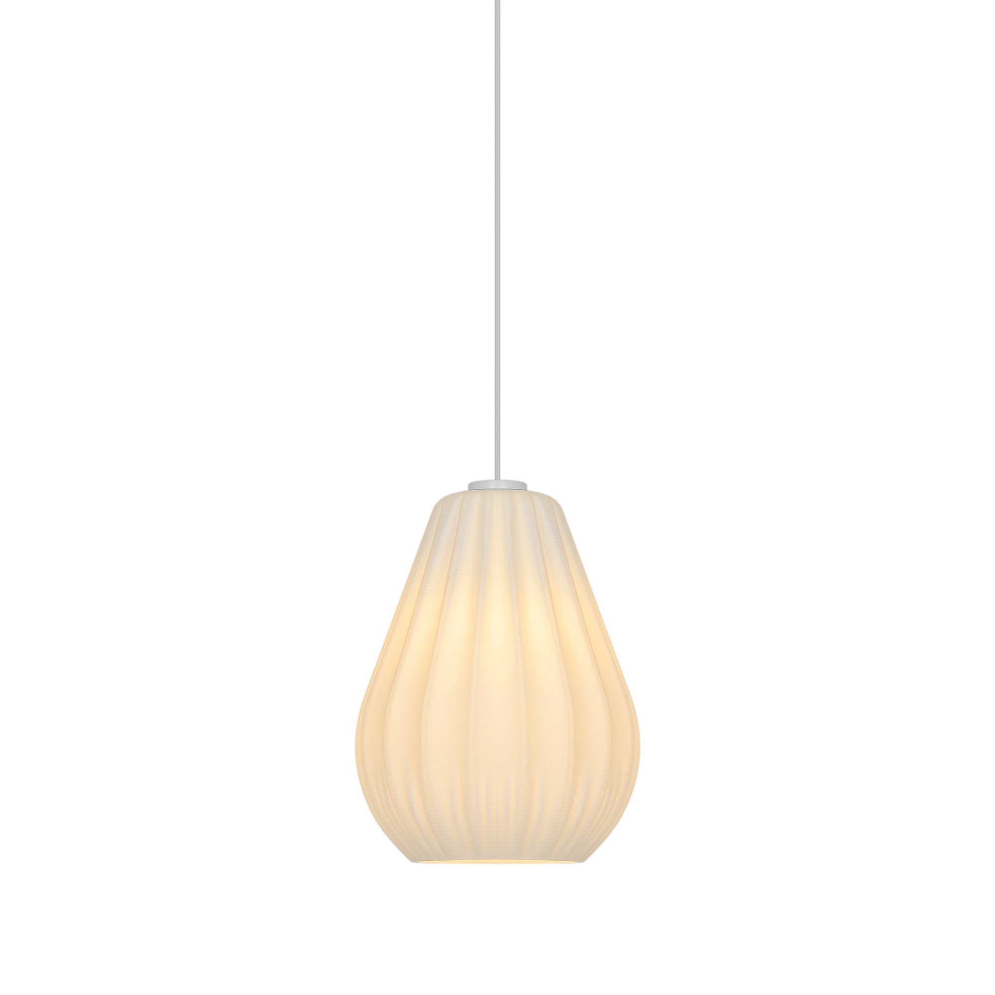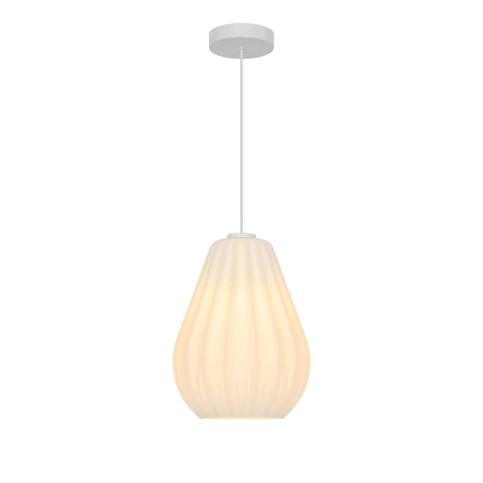 GlasSallino verbindet klassische Formen mit moderner Schlichtheit. Der Lampenschirm in mattem Opalglas sorgt für ein weiches, diffuses Licht, das eine warme und einladende Atmosphäre schafft. Die subtilen Plissee-Details verleihen diesem eleganten Design zudem Textur und Charakter.