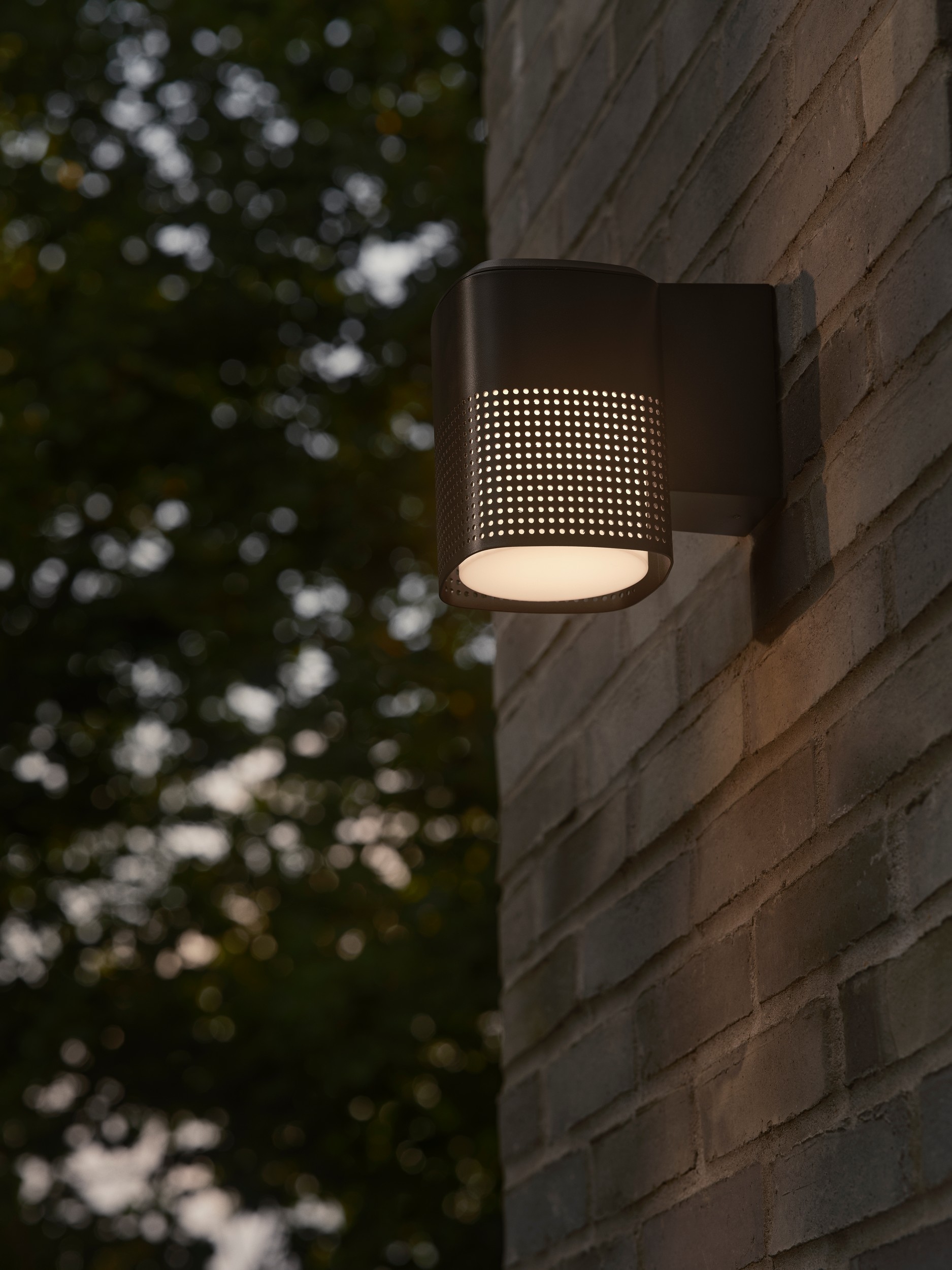 AluminiumDie vom renommierten Designbüro Jacob Jensen Design entworfene Wandleuchte Sidara verbindet modernen Minimalismus mit einem raffinierten architektonischen Ausdruck. Die perforierte Oberfläche erzeugt in Ihrem Außenbereich ein reizvolles Spiel zwischen Licht und Schatten.