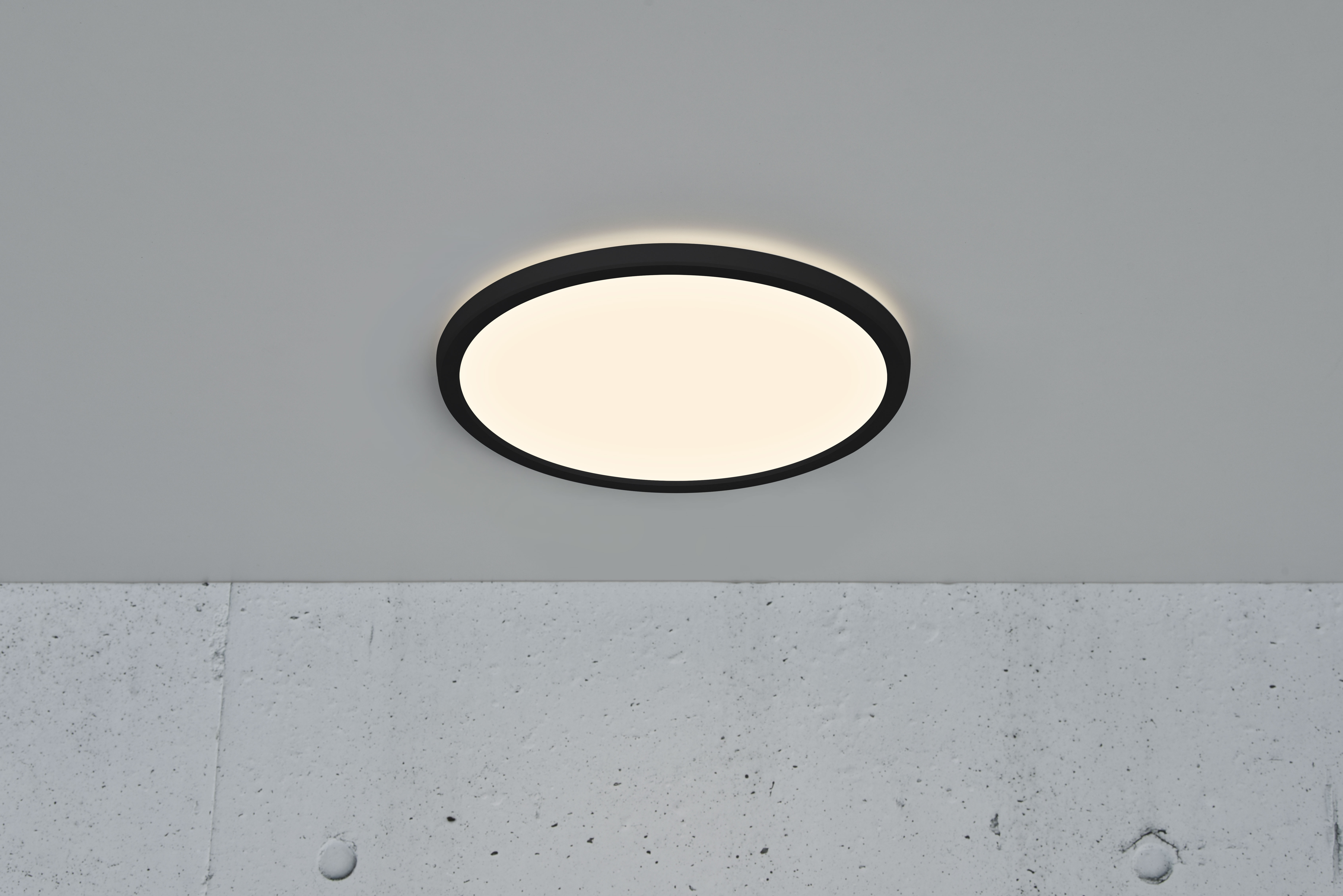 PlastikOja ist eine universell einsetzbare, ultraflache Deckenleuchte mit integrierter LED und Moodmaker™-Funktionalität, mit der Sie das Licht über Ihren normalen Wandschalter in drei Stufen dimmen können. Oja bietet ein neutrales, weißes Licht (4000K), einen schönen Hintergrundbeleuchtungseffekt und eine sehr lange Lebensdauer von 25.000 Stunden.