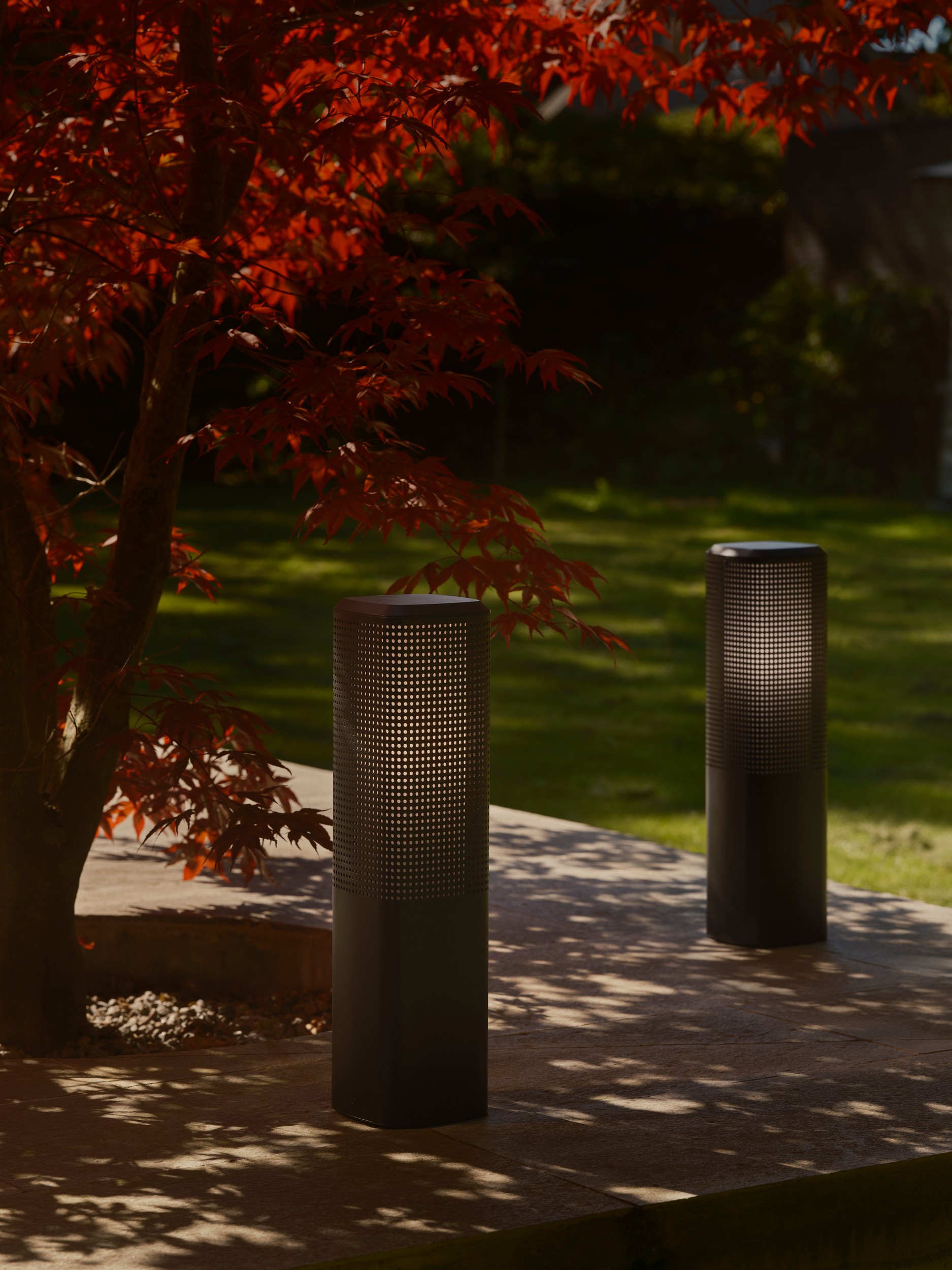 AluminiumDesigned by renowned Jacob Jensen Design, this Sidara garden light combines modern minimalism with a refined, architectural expression. The perforated surface creates a beautiful play of light and shadow in your outdoor areas. Easy to install with the included base.