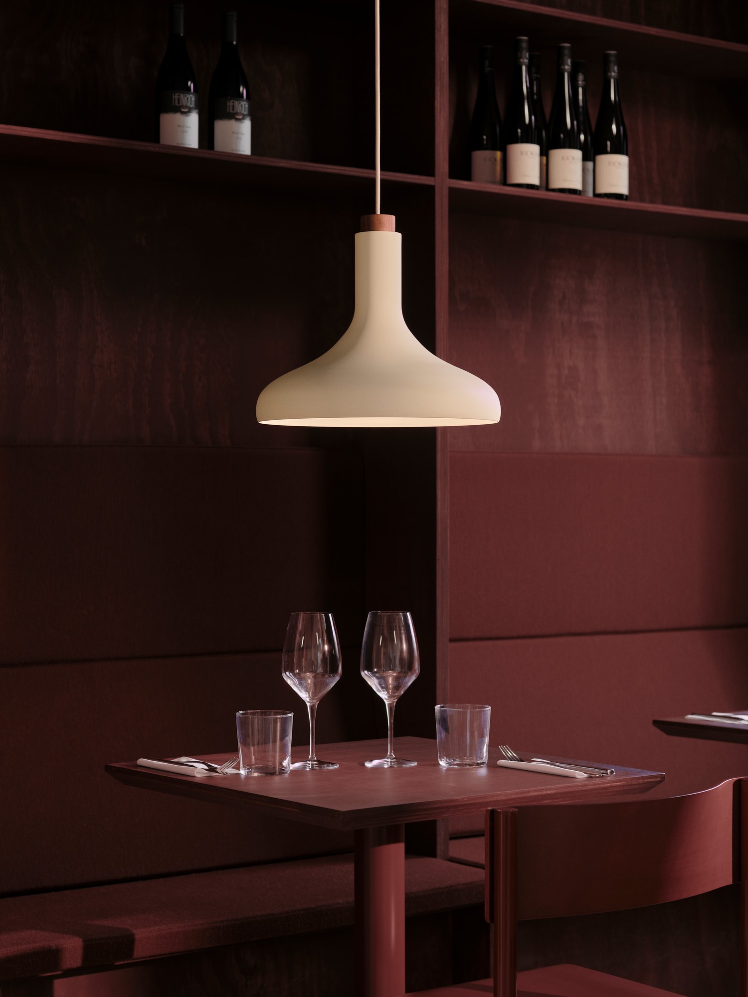 MetalFuji, designed by Danish design studio Says Who, finds its perfect balance in the meeting between two classic materials. The soft, organic lines of the wooden top add a natural warmth to the sleek, industrial look of the metal shade. Fuji is ideal above the dining table and casts a pleasant, downward light.