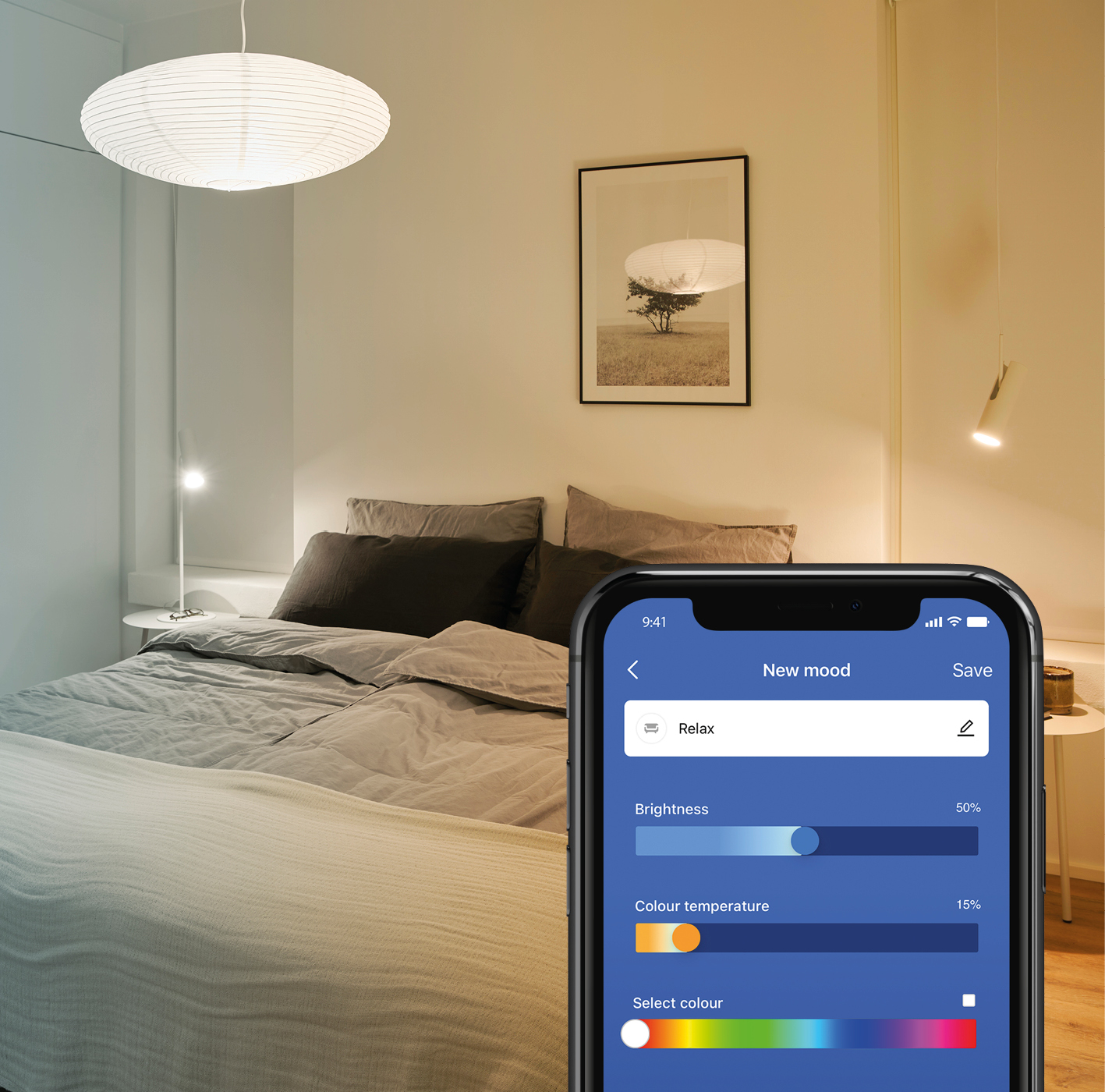 Our everyday life offers many different situations, which all require different types of lighting. Nordlux Smart gives you the possibility to customize your lighting at home by providing you with pre-set moods or allowing you to create and save your own moods. The moods can be activated on one single light bulb or on multiple light-sources simultaneously, for example your whole living room. This way you will easily find the perfect light for every situation, making your everyday activities more effective and fun.