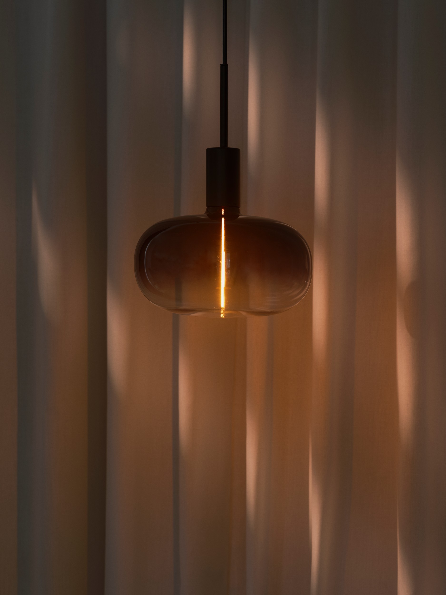 GlassThis oversized decorative smoked glass bulb creates an elegant focal point, whether placed in a simple socket or paired with a minimalist fixture. It has an E27 fitting and a dimmable, warm light.