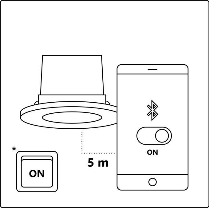 Slå på Bluetooth på din enhet. Avståndet till Smart Downlight får vara max. 5 meter. * Kom ihåg att tända lampan.
