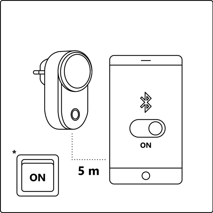 Slå på Bluetooth på din enhet. Avståndet till Smart Plug får vara max. 5 meter. * Kom ihåg att slå på strömbrytaren.